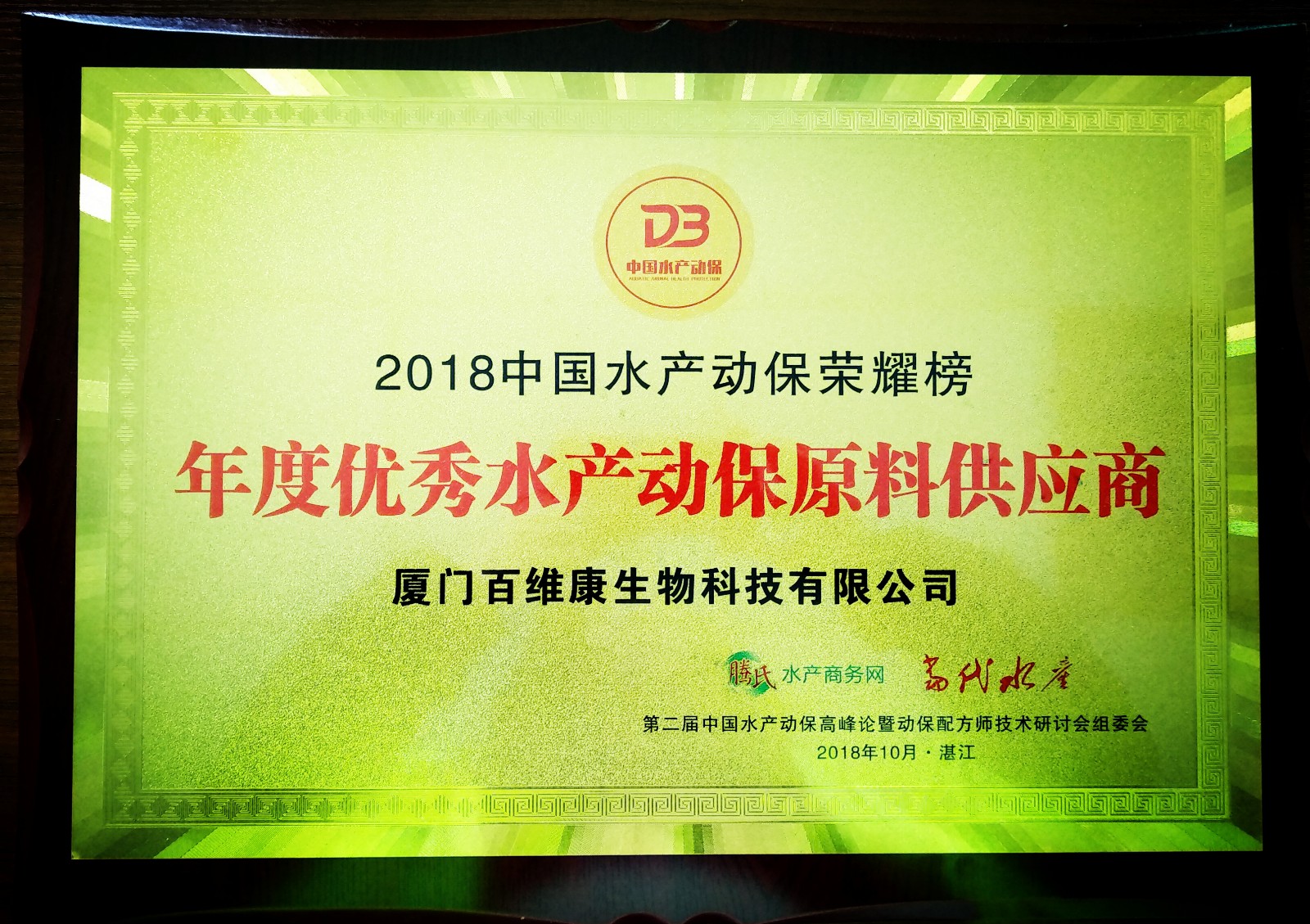 榮譽(yù):廈門百維康榮膺《年度優(yōu)秀水產(chǎn)動保原料供應(yīng)商》殊榮;總經(jīng)理王曉林先生斬獲《年度優(yōu)秀水產(chǎn)動保配方師》殊榮