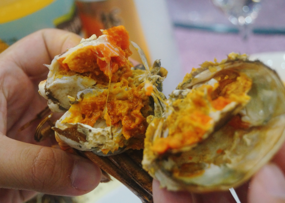 蟹乃食中珍味,素有“一盤蟹,頂桌菜”的民諺,故盛宴上第一道菜便是大閘蟹。此蟹是江蘇區(qū)域同事帶回來的全程使用我司產品養(yǎng)殖出塘的大閘蟹,此批雌蟹只只體大膘肥,青殼白肚,金爪黃毛,簡直像個威風凜凜、光彩照人的鐵甲將軍。經(jīng)清蒸后,蟹呈亮橘紅色,在揭開蟹蓋的那一剎那,入眼的膏黃脂肥肉緊,入口鮮甜細潔滑嫩,不愧為人間美味。